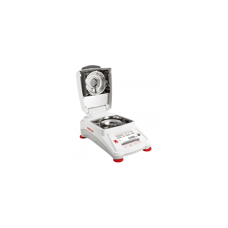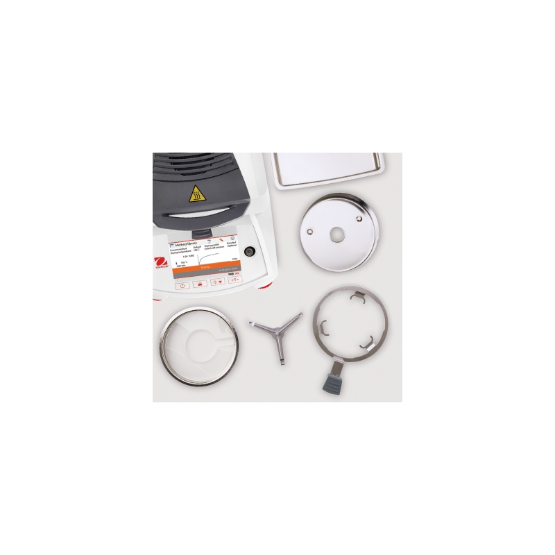 Tres criterios de cierre (manual, con temporizador o automático), dos perfiles de secado (estándar y rápido), almacenamiento de hasta dos métodos, guía del usuario, rango de temperatura de calentamiento de 40 ° C a 200 ° C (incrementos de 1 °C), 13 idiomas de operación