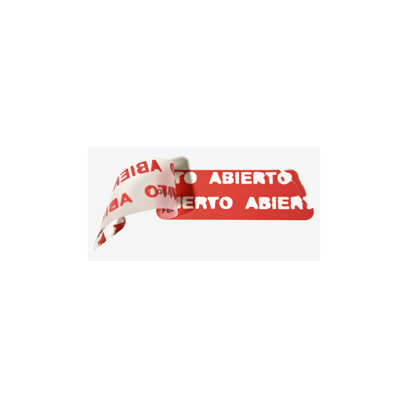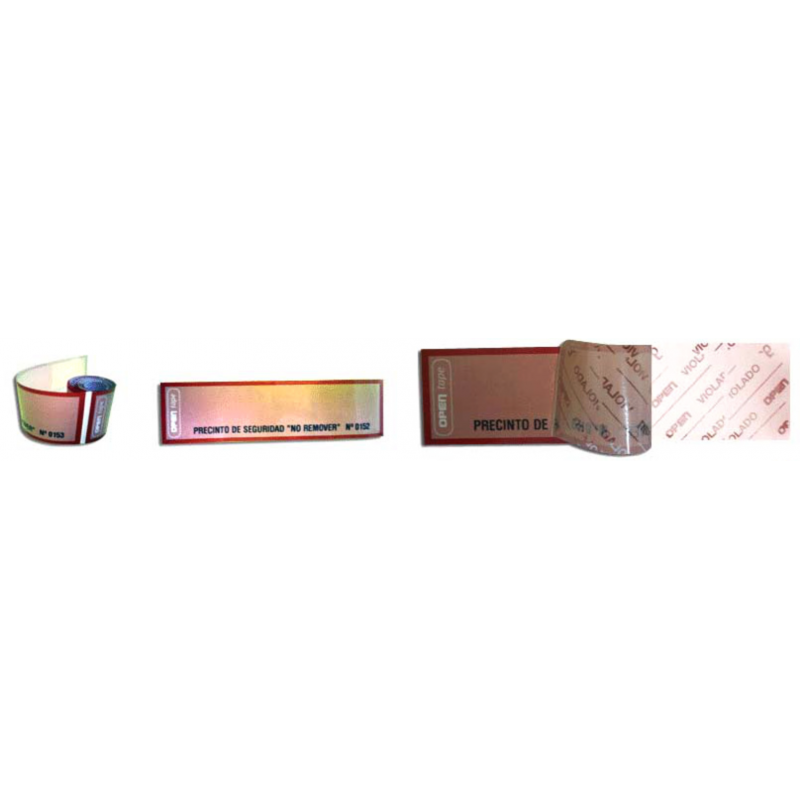 Son también un precinto de seguridad ya que, al intentar quitarla, queda inscripta sobre dicha superficie una palabra que lo evidencia: VIOLADO, VOID, etc.
